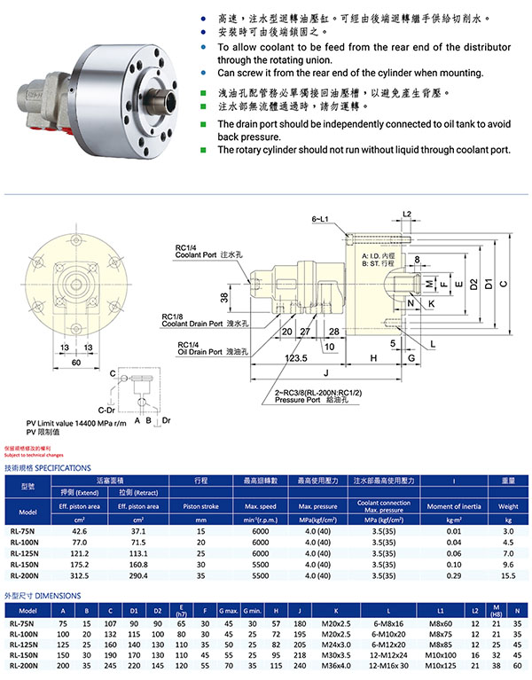 RL-AN注氣型油缸