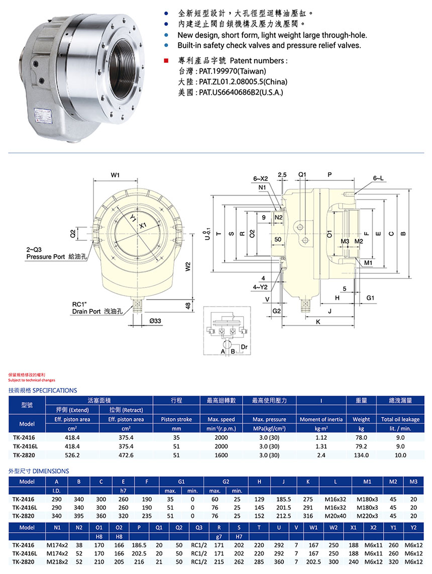 TK超短型中空回轉油壓缸