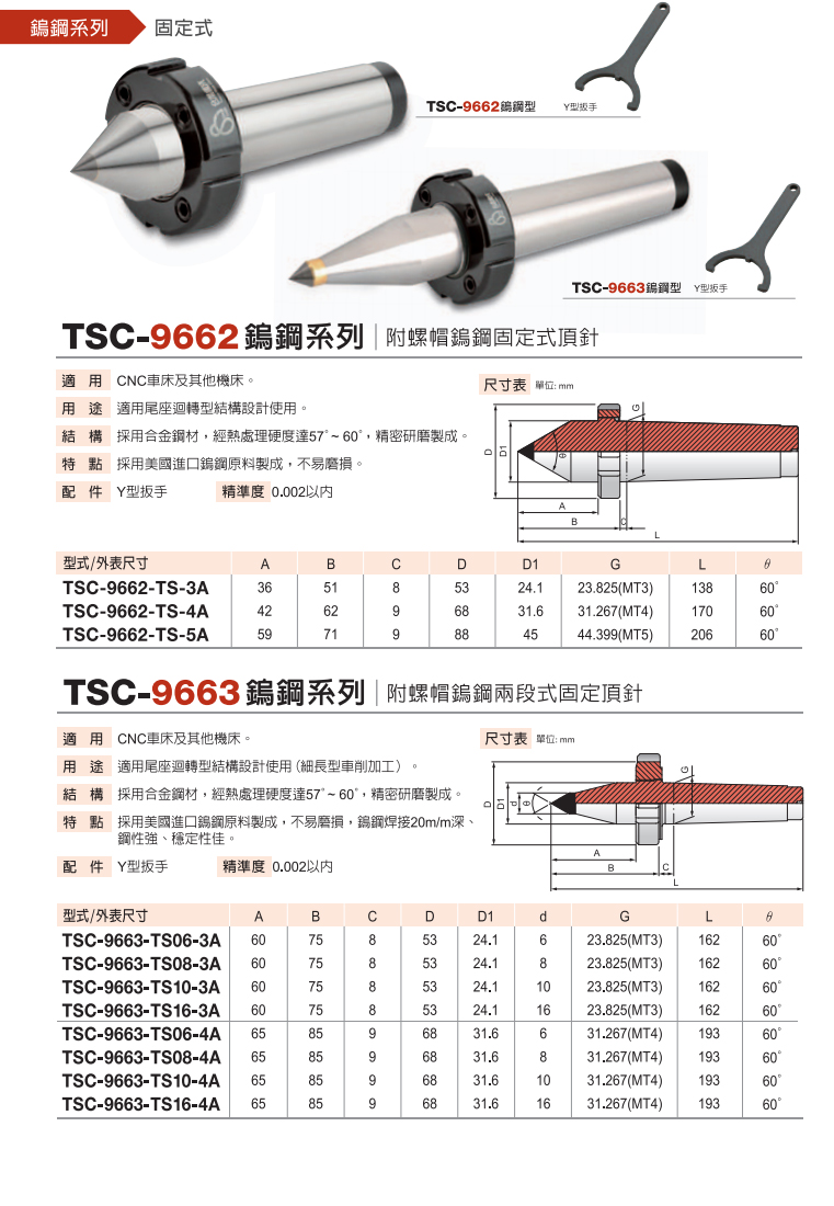 TSC-9662 TSC-9663附螺母固定式合金頂針