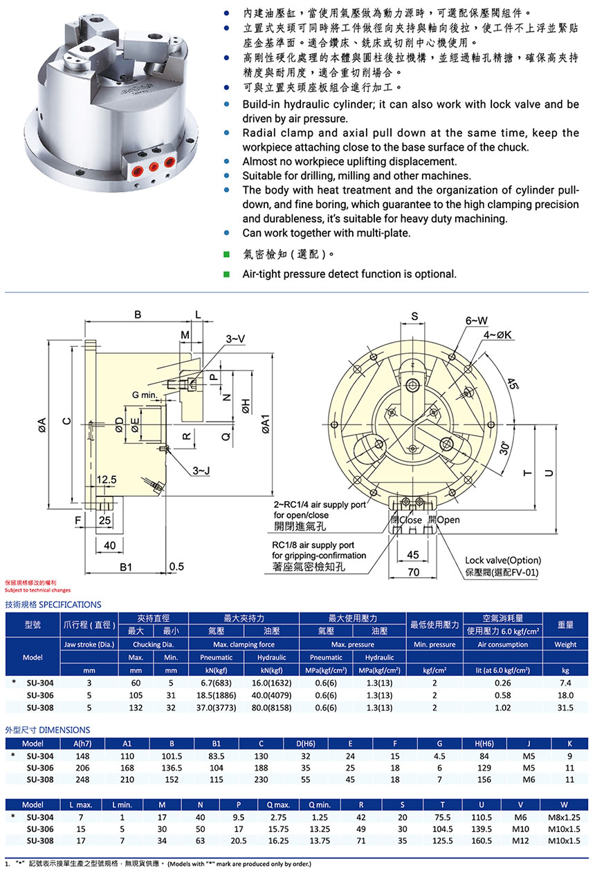 SU立置式爪背托后拉夾頭