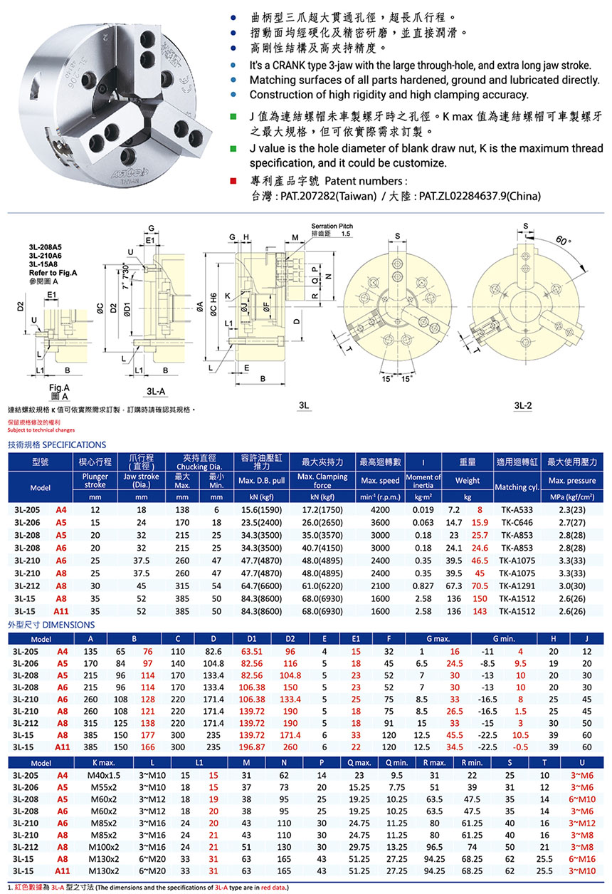 3L/3L-A超長爪行程動力夾頭