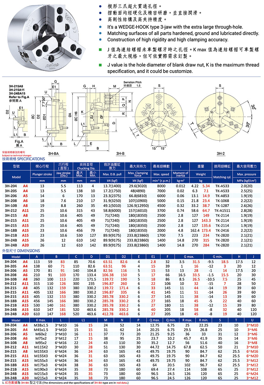 3H/3H-A中空動力夾頭