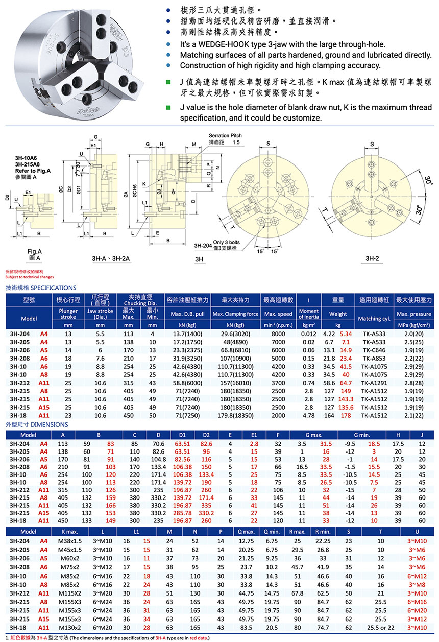 3H/3H-A中空動力夾頭